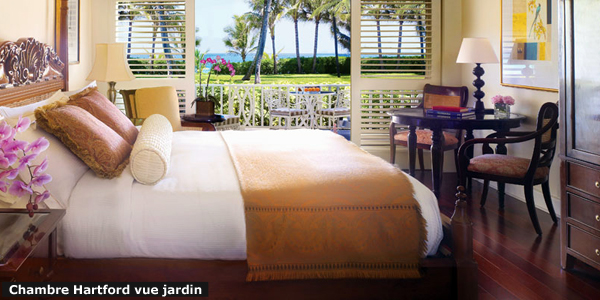 Des chambres émanent raffinement, sobriété, modernité et élégance jusque dans les moindres détails. Deux ailes distinctes sont proposées : Hartford Wing (l’aile Hartford) et Crescent, des chalets dans les jardins tropicaux et trois villas de grand luxe.